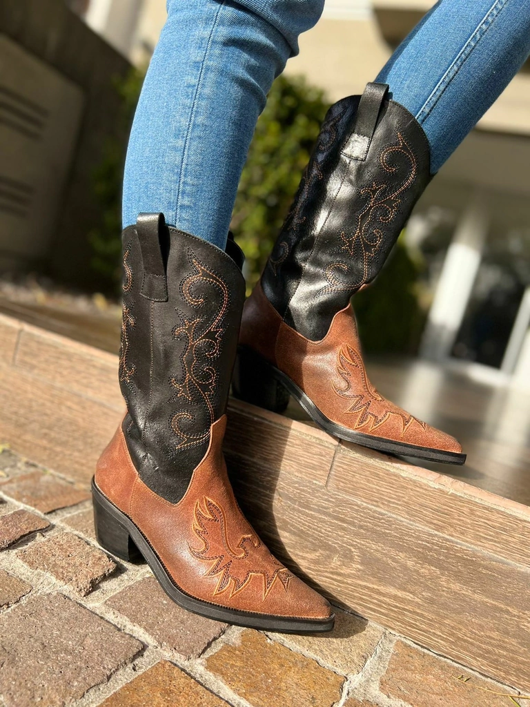 - Botas tejanas de caña media realizadas en cuero vacuno de calidad.