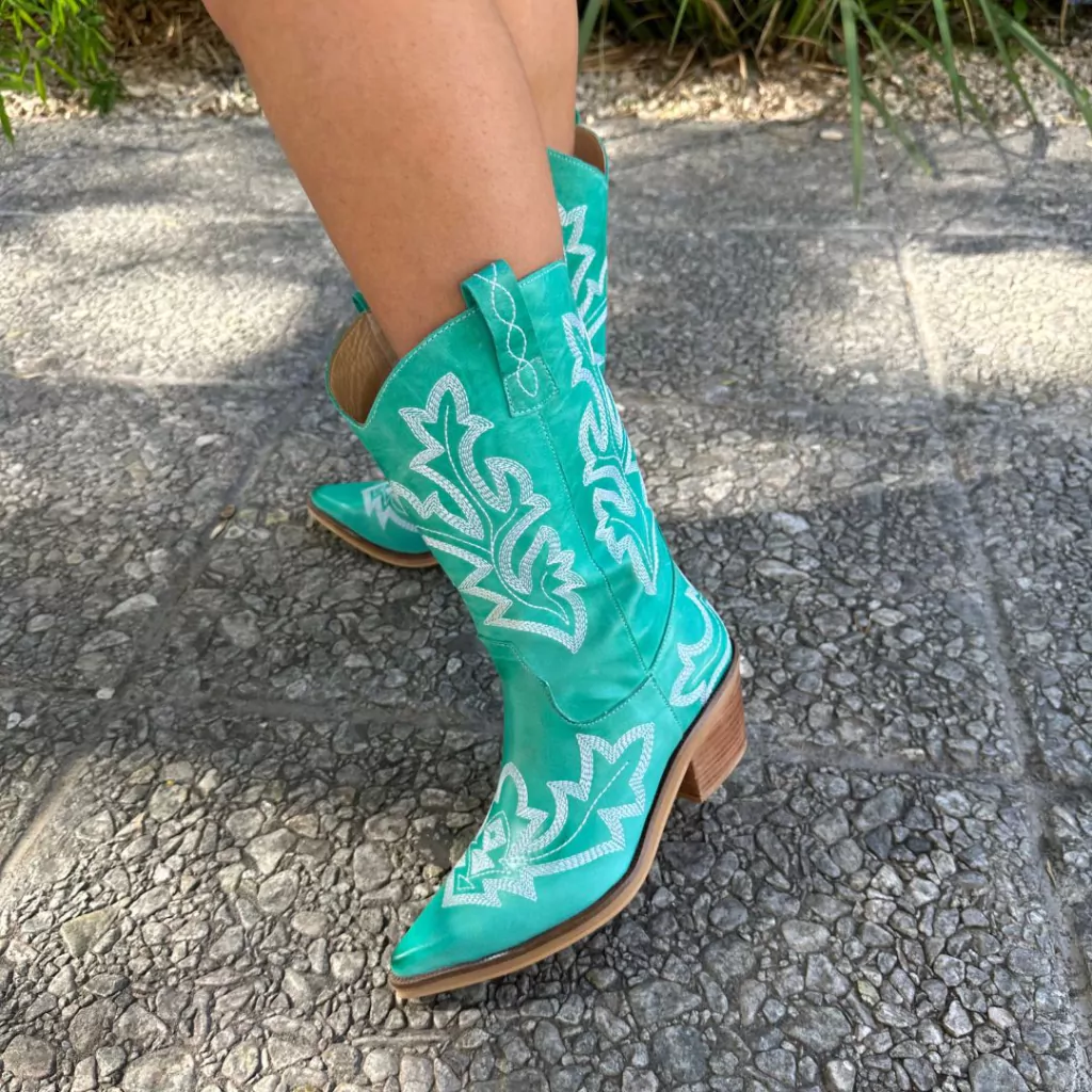 - Botas tejanas de caña media realizadas en cuero vacuno de calidad.